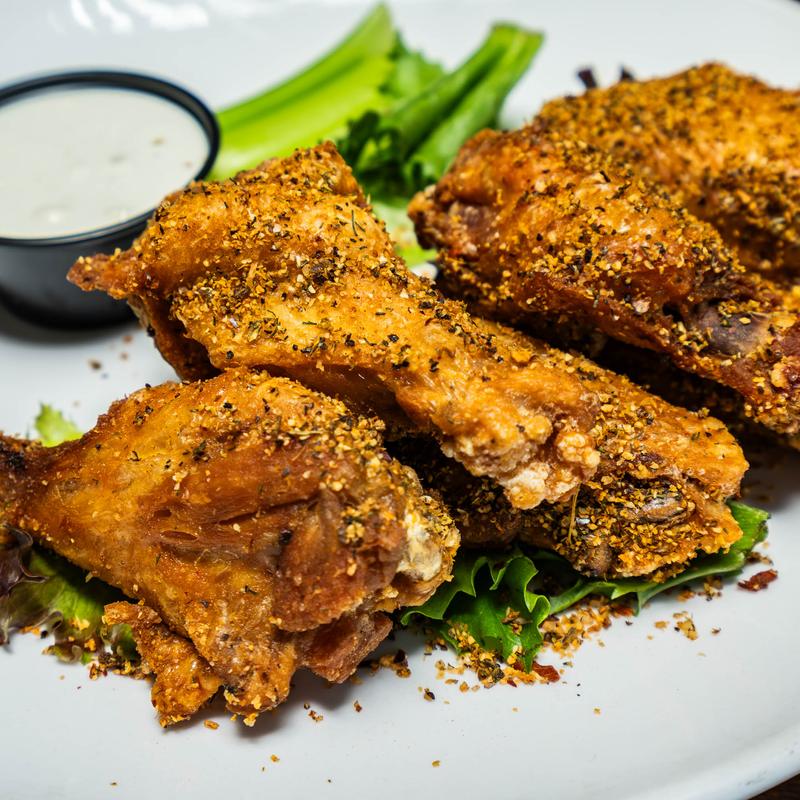 Diced chicken breast tossed in seasoned flour, fried, and tossed in chipotle pepper, BBQ sauce, and buffalo. Served with house-made blue cheese dressing.