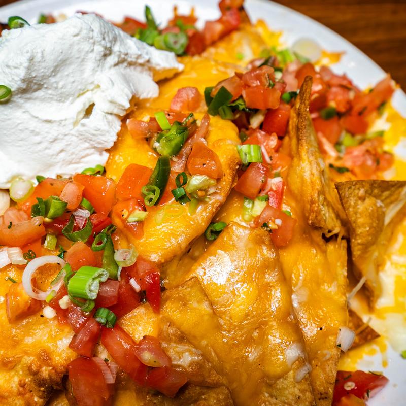 Corn tortilla chips layered with cheddar and Monterey Jack cheese, topped with pico de gallo and sour cream • Buffalo chicken $18.00 | Blackened chicken $18.00 | Braised short rib $19.00 | Seared sirloin $19.00