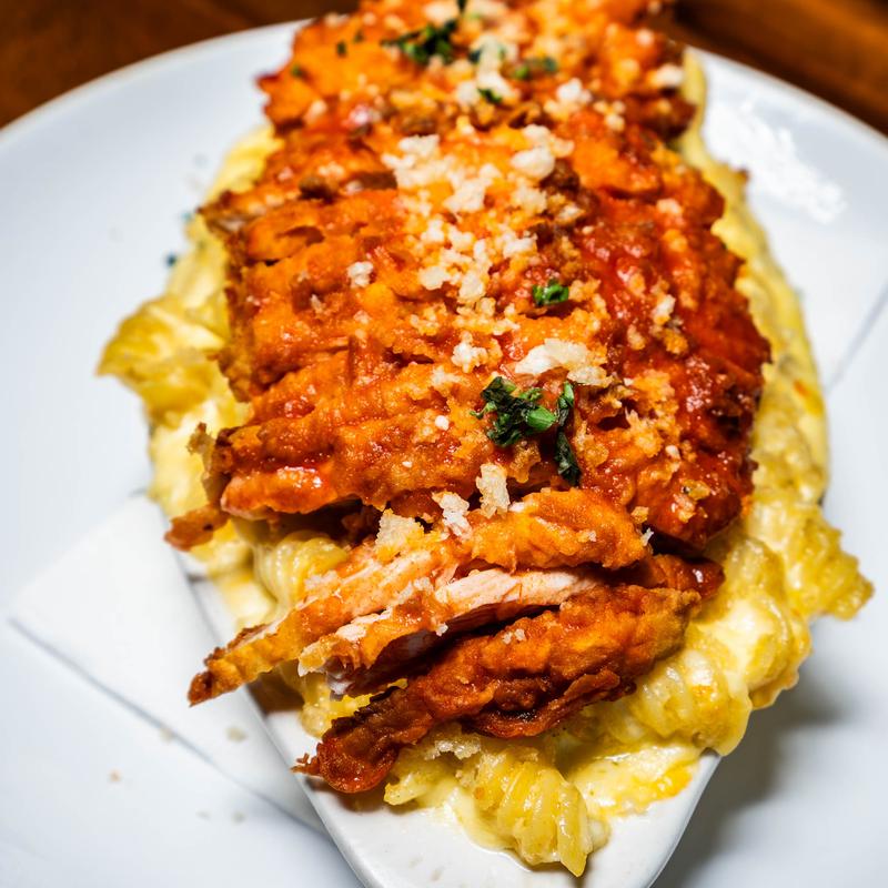 Fusilli pasta topped with seasoned panko • Plain $11.00 | Crispy bacon $13.00 | Buffalo chicken $15.00 | Short rib $16.00