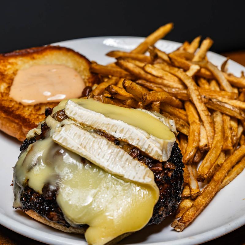 Served on a toasted brioche bun topped with smoked aioli, melted brie cheese, and bacon jam. Served with house-cut fries.
